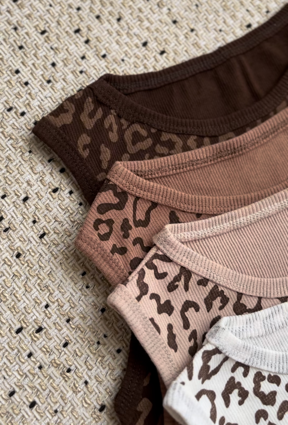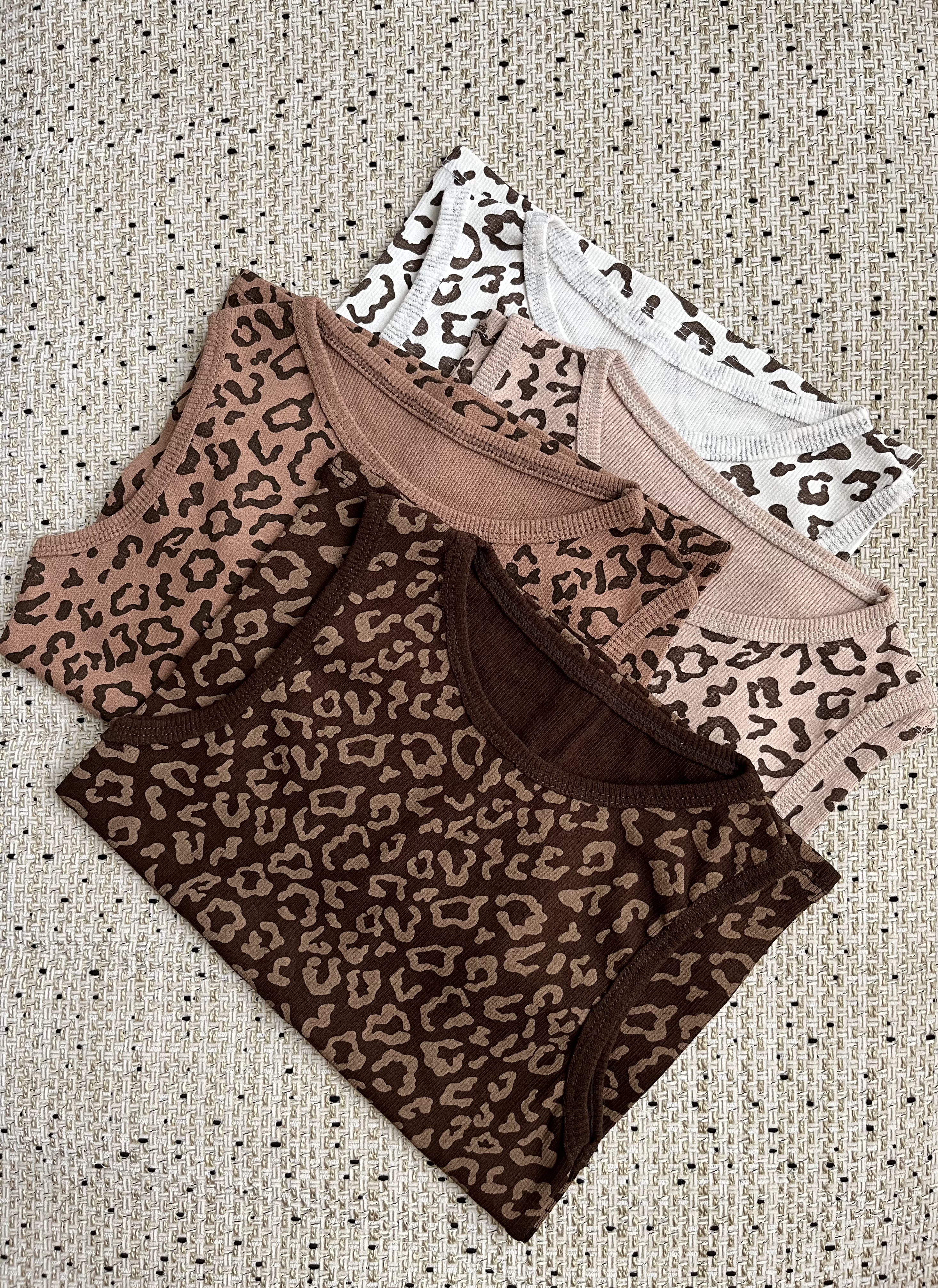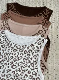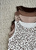 کراپ تاپ پلنگی 🐆 / در چهار رنگ جذاب مطابق تصویر / جنس کشبافت پنبه با کشسانی بالا / فریسایز مناسب تا ۴۴ / قد کار ۵۸ سانت