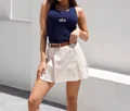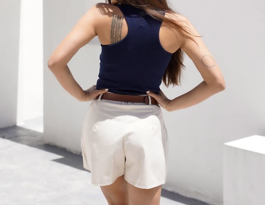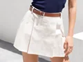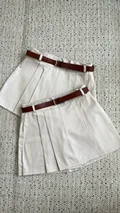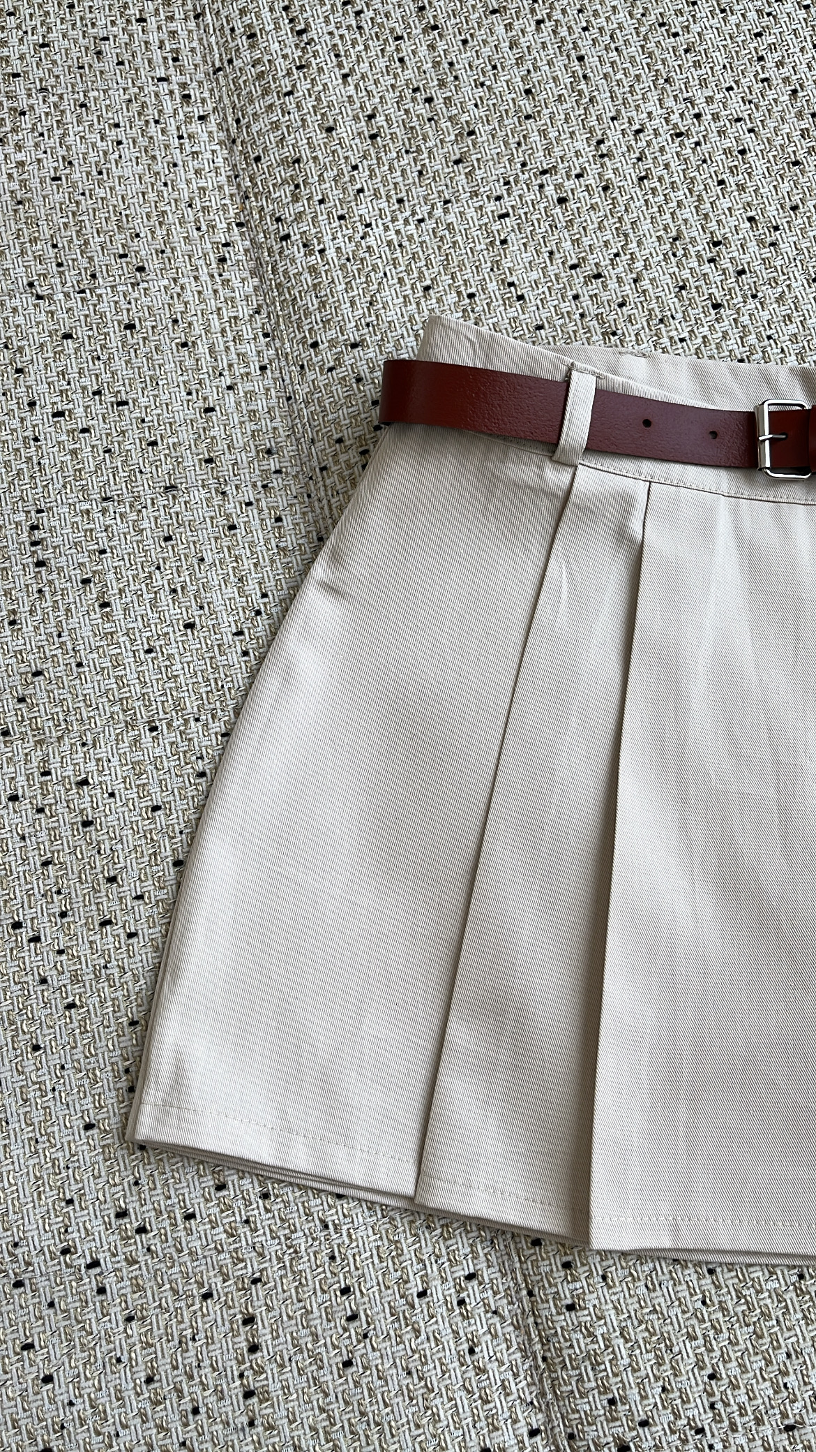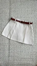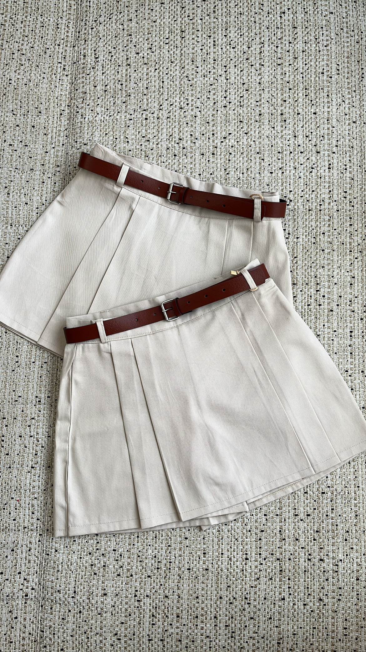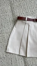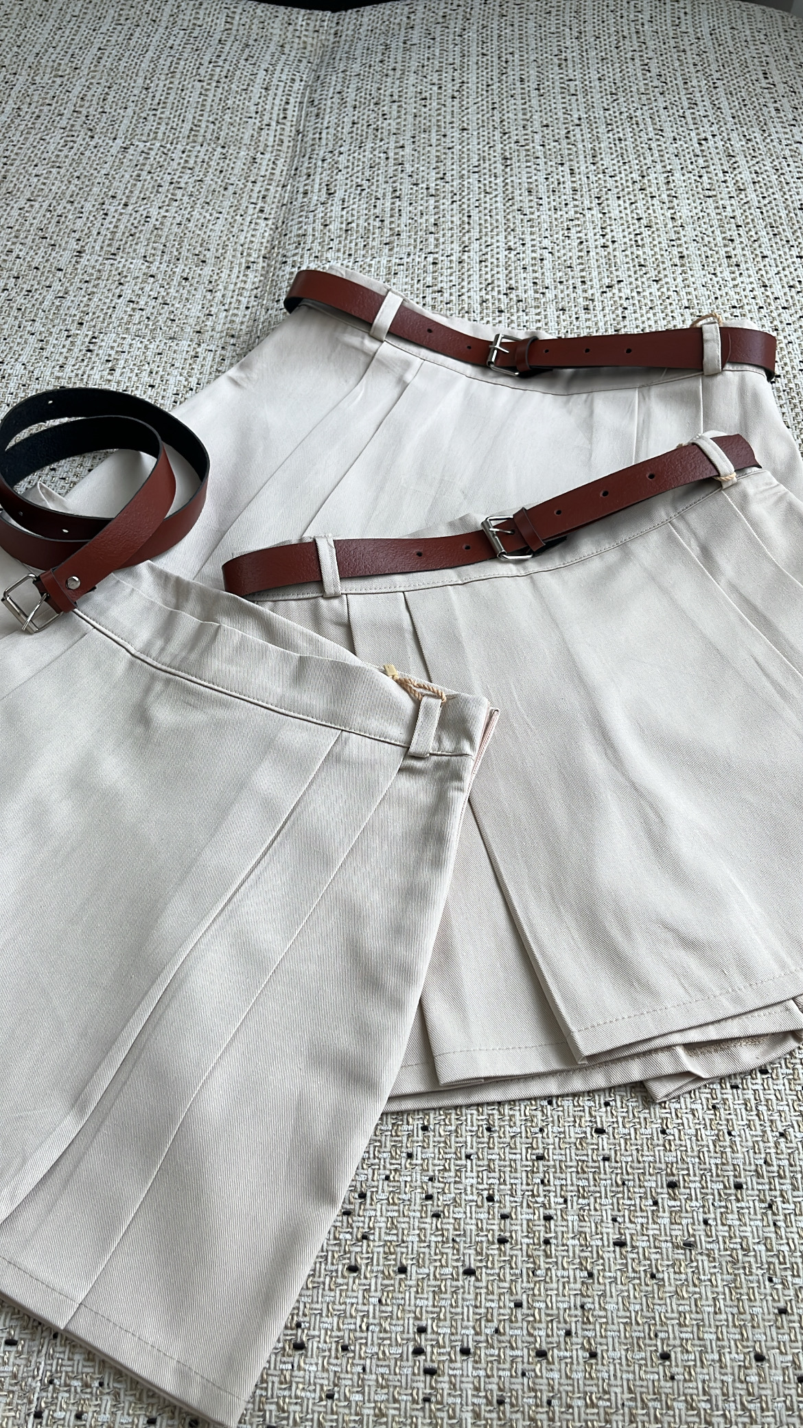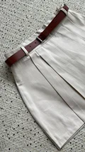 شلوارک دامنی جنس کتان / تک رنگ کرم / موجود در ۳ سایز / دارای کمربند ست